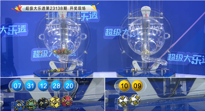 大乐透第2023138期奖号:07 12 20 28 31 + 09 10。
